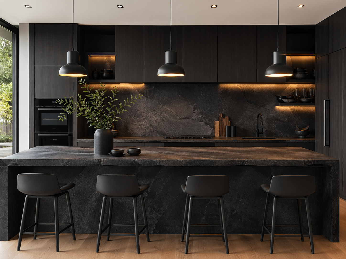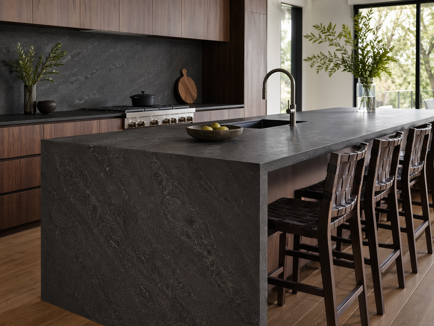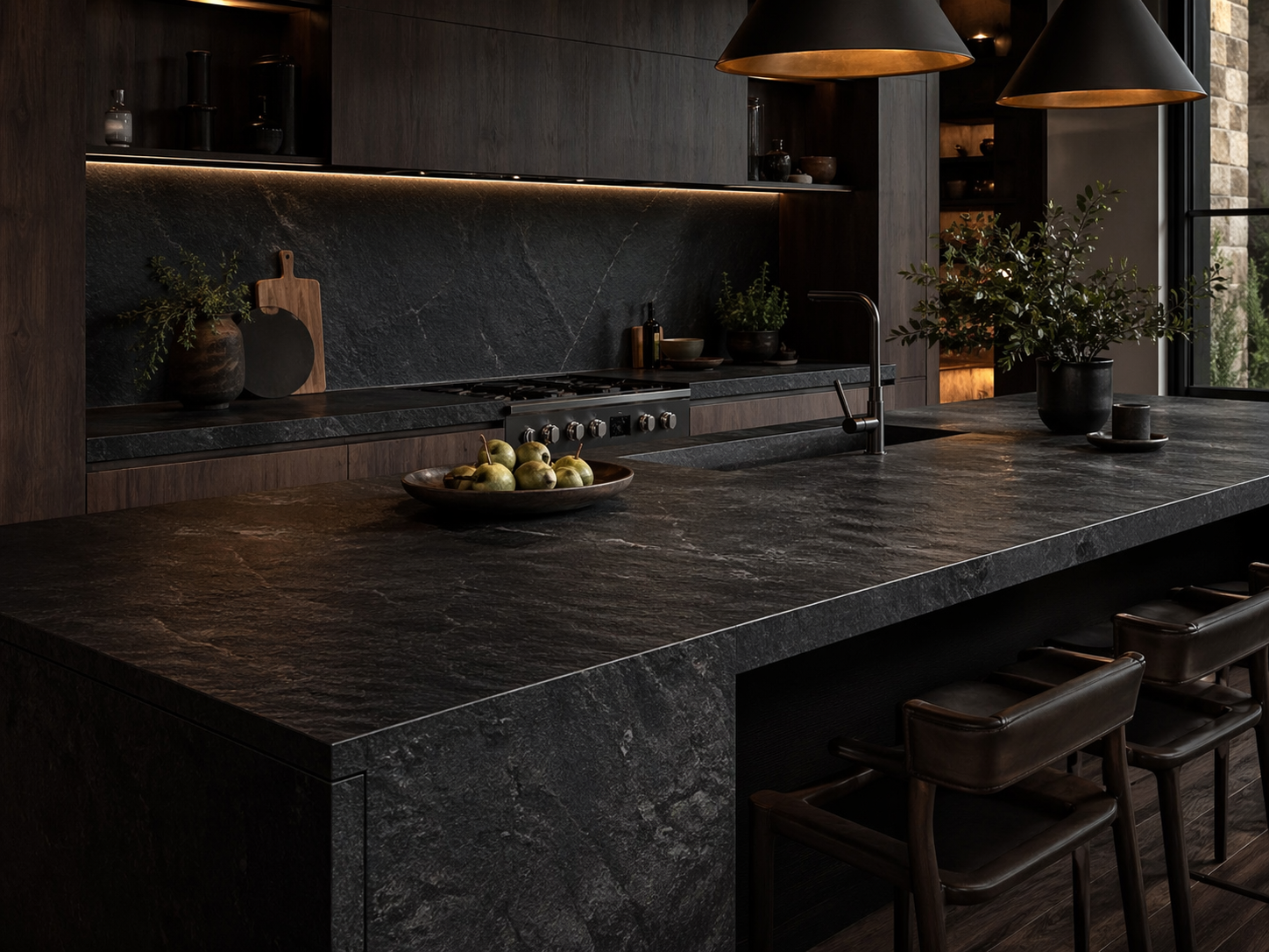 Bazalt, yalnızca dekoratif bir yüzey uygulaması değil, aynı zamanda alanın genel mimari tasarımını tamamlayan önemli bir yapı unsurudur. Koyu gri ve siyah tonlara sahip bazalt modeller güçlü ve modern bir görünüm oluştururken, farklı yüzey işlemleriyle daha doğal, mat veya prestijli bir atmosfer elde edilebilir.